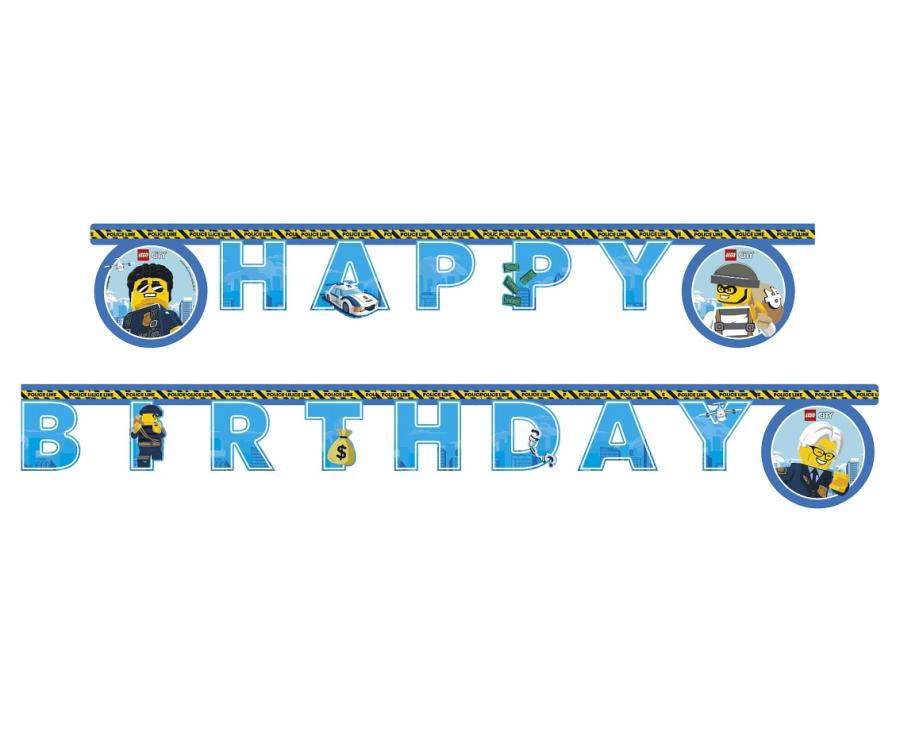 Baner „Happy Birthday” z motywem Lego City – 200