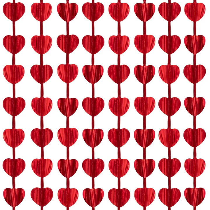 Romantyczna i efektowna kurtyna imprezowa z czerwonymi serduszkami, wykonana z błyszczącej folii metalicznej. Idealna na Walentynki, zaręczyny, wieczory panieńskie, rocznice, sesje zdjęciowe i inne romantyczne okazje.