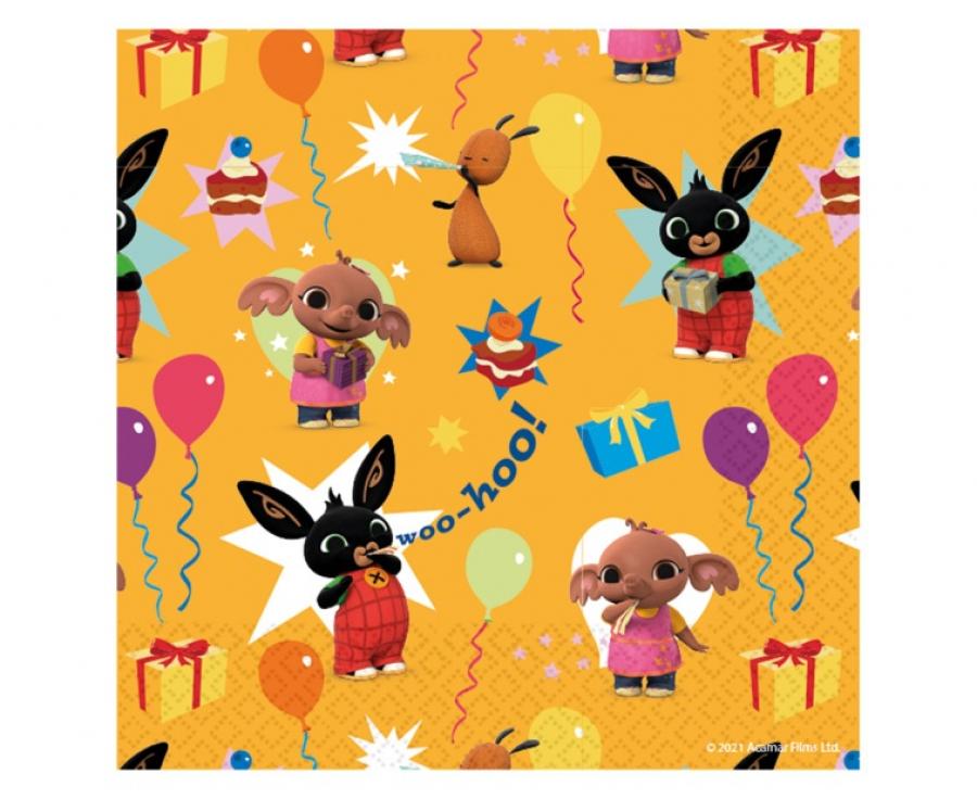 Stwórz niezapomnianą atmosferę na przyjęciu dzięki serwetkom z motywem Królika Binga! Idealne na urodziny, imprezy tematyczne i na spotkania z małymi fanami bajki.