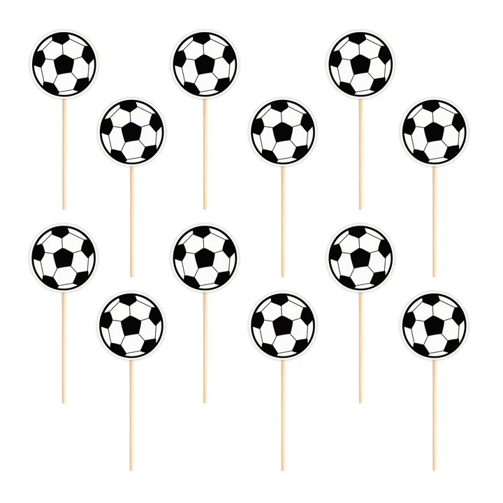 - Zestaw zawiera 12 szt topperów w kształcie piłki nożnej
