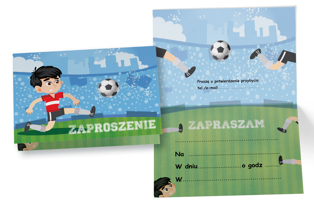 Zaproszenie na urodziny z motywem piłki nożnej – idealny sposób na zapraszanie gości na imprezę fana footballu.