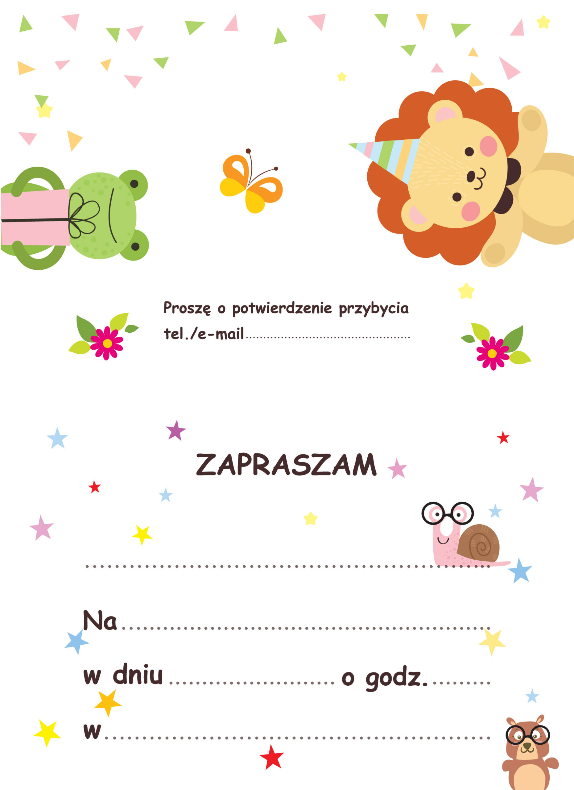 Wyrusz w urodzinową przygodę z uroczymi pasażerami samochodu! Ślimak, żabka, miś i lew zapraszają wszystkich gości na wyjątkową imprezę pełną radości i uśmiechów! To idealne zaproszenie dla maluchów, które kochają zwierzątka i kolorowe ilustracje!