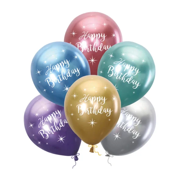 Balony „Happy Birthday” chromowane 12″ 6 szt