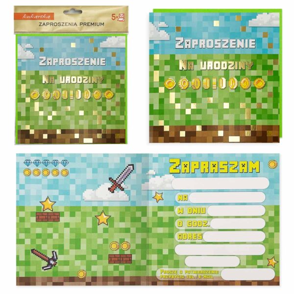 Zaproszenie urodzinowe Piksele 5 szt