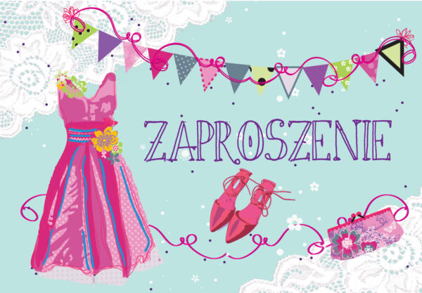 Zaproszenie ogólne różowe kwiatki 5 szt