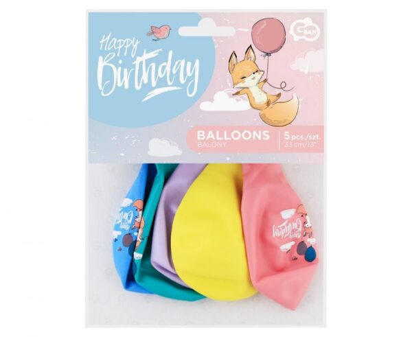 Balony „Happy Birthday” lisek 13″ 5 szt