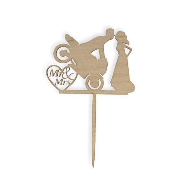 Topper drewniany Para Młoda z motocyklem